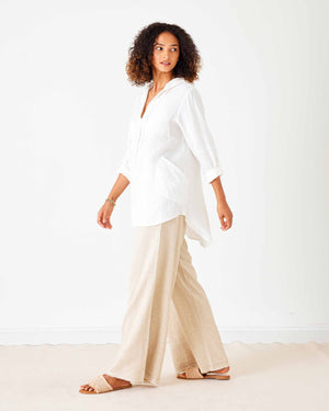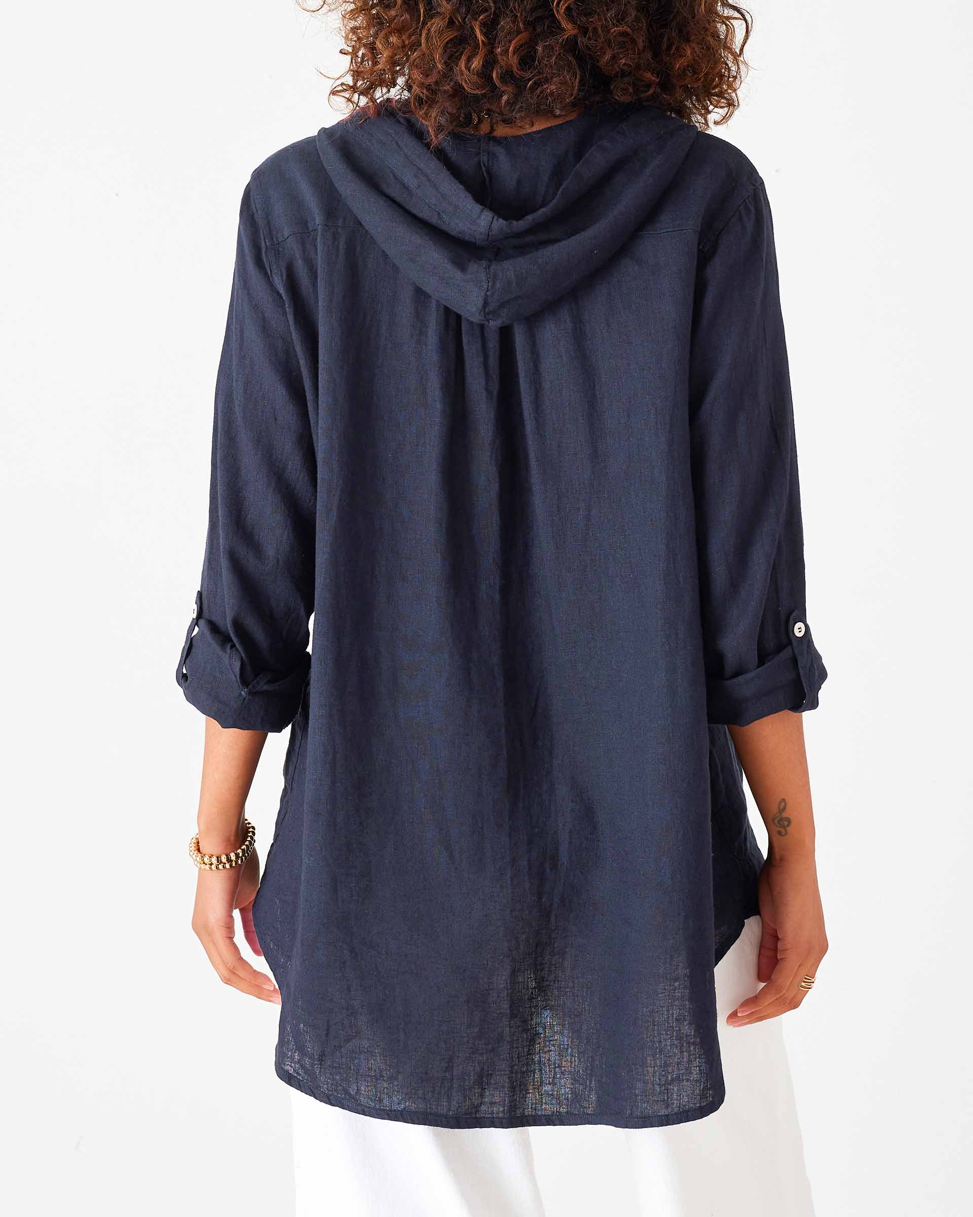 Named after the chill beaches in Hermosa, California, this linen blend cover up is everything you need for days in the sand. The elevated material is perfect over a swim suit or layered with your favorite pant and with a hood, drawstrings and pockets of course, you'll look like a classic Cali goddess.