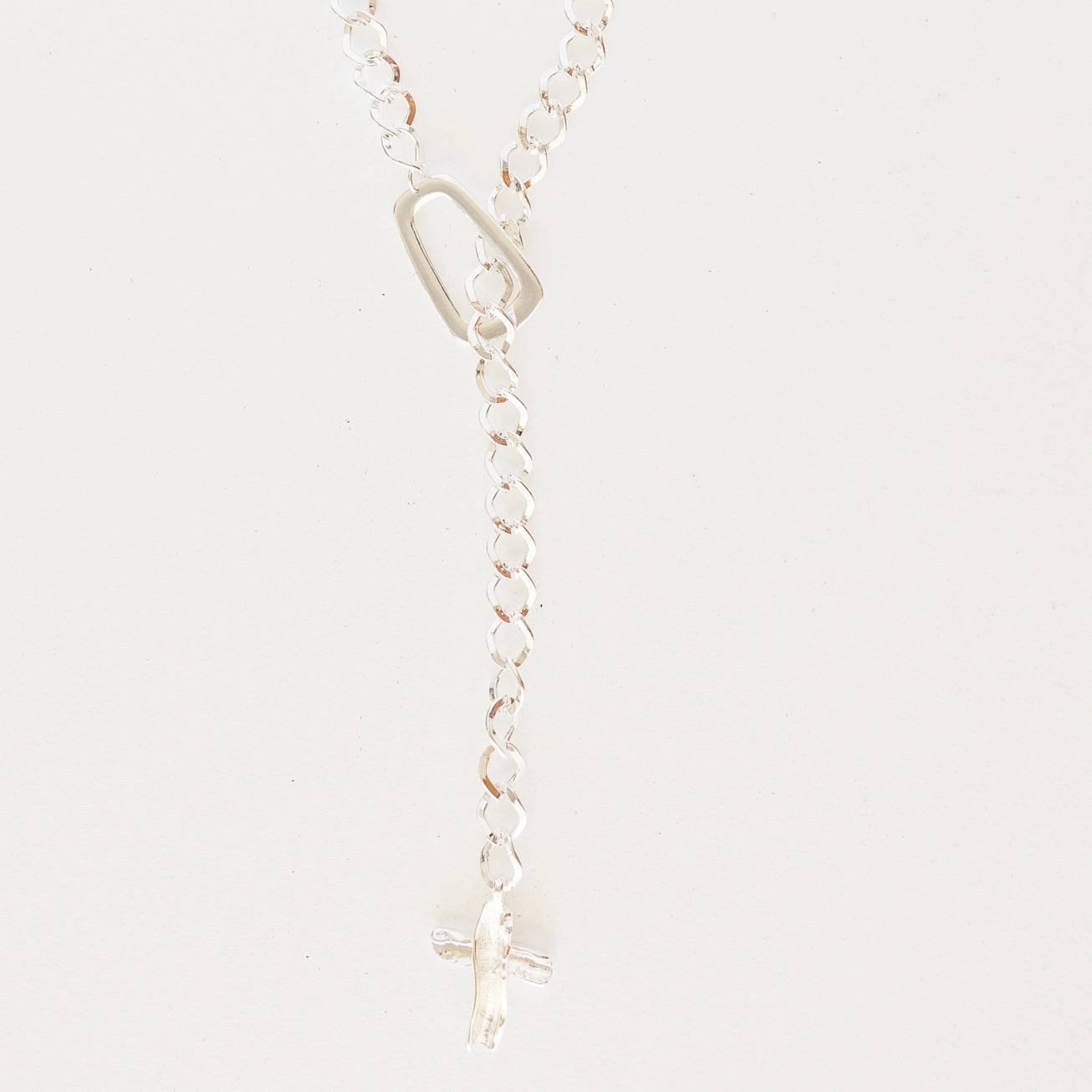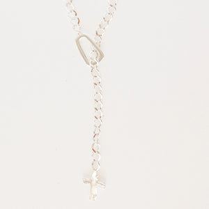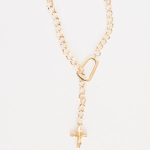 Make a bold statement with a chain link necklace with a matching chunky Cross pedant at the end. Comes in either gold or silver, measuring 20" in length, this piece will be sure to complement every outfit.