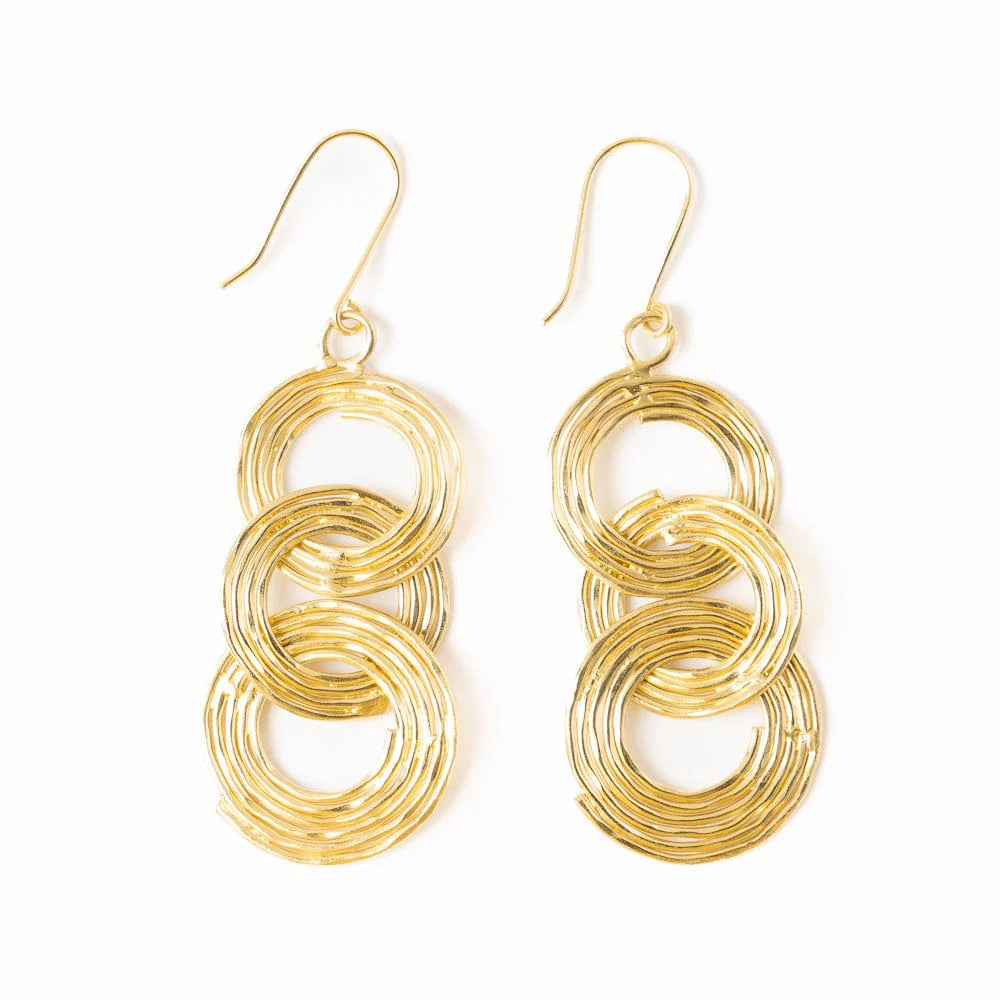 Crafted from high-quality brass, the Sloane Spiral Interlinking Circles Drop Earrings are built to last. They're lightweight and comfortable to wear, so you can rock them all day (and night!) long without any discomfort.