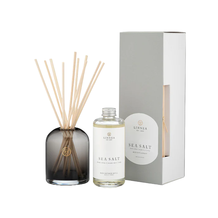 Includes one 6oz smoke grey glass bottle diffuser with ten rattan reeds.