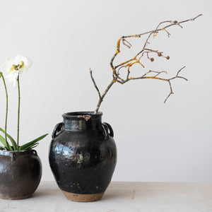 This large vase brings a bold look to any space and is perfect for holding any florals. Bring a little mood into your space with this unique found piece. Each with slightly differ.