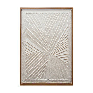 This textured paper Mache art is subtle enough to fit into any space, but bold enough to make a statement. Framed in oak, bring one or two of these pieces to elevate your home.