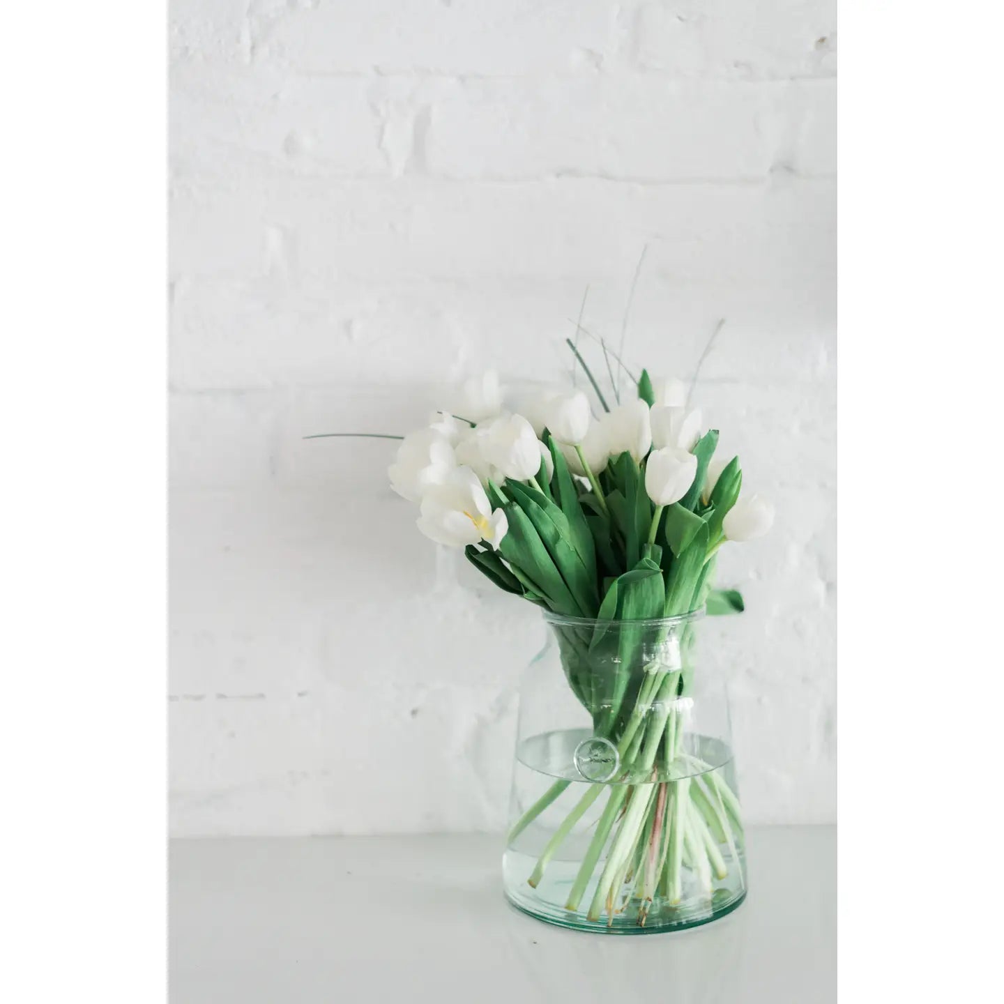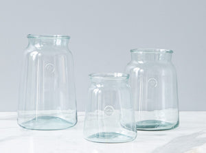 In villages throughout Europe, wide mouth glass jars were used for the summer harvest. These mason jars are made from recycled glass blown into authentic casts to retain their characteristic appeal. The beauty of the French Mason Jars is their organic and imperfect shape. With the addition of a vintage-inspired French bee seal, these vases make for an elegant and timeless accent piece. The mason jars true beauty shines when embraced as a clear glass vase with a bouquet of fresh flowers.