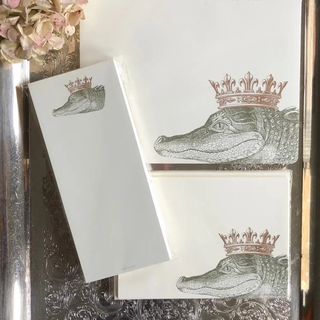 So chic, this long notepad is almost too pretty to write on! This hand-drawn regal alligator illustration is flat printed with an environmentally-friendly, soy-based ink on premium, USA-made paper.