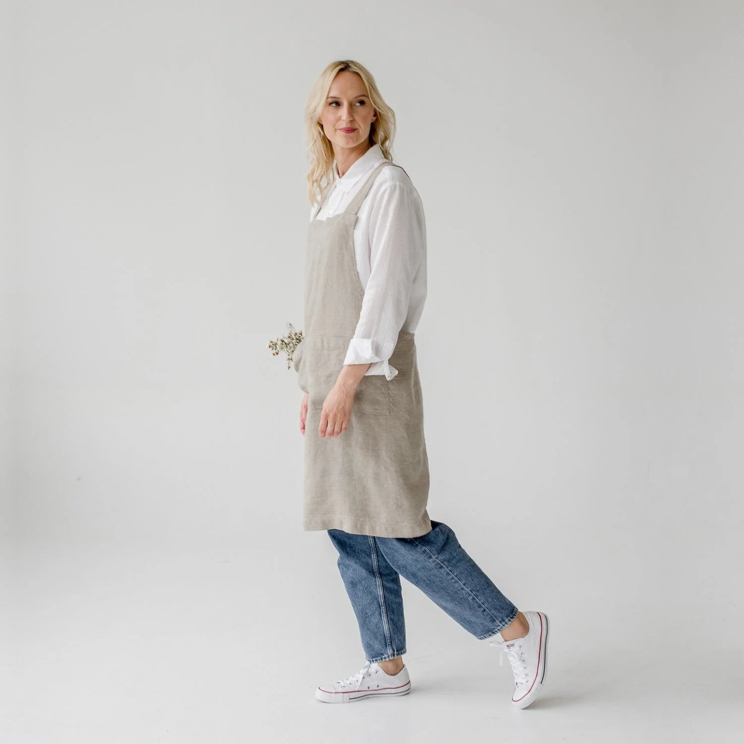 A perfect addition to any kitchen for anyone that loves cooking or is learning how to cook. This Linen Crossback Apron is comfortable as it has no ties and is easy to put on and off. The humble piece of fabric to bring you joy while cooking. Made with 100% stonewashed natural linen and with two front pockets are perfect for keeping things at hand, you couldn't ask for a better accessory.