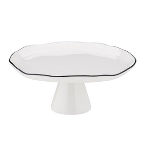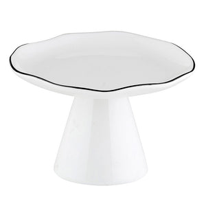 The Pedestal Tray in Black and White Glaze. Classic colors provide a clean presentation of your favorite desserts and appetizers.