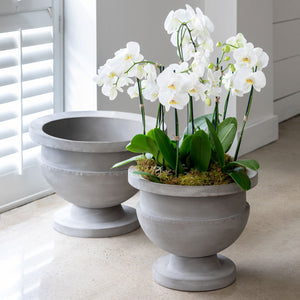 Simple yet refined, these weathered metal planters are perfect for showcasing a variety of plants, flowers, and shrubs. Comes in two sizes.